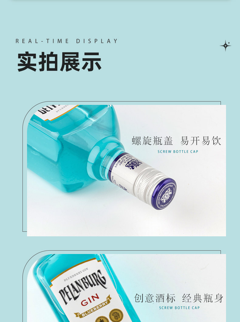 蓝莓金酒杜松子酒Gin酒长岛金汤力鸡尾酒基酒调酒洋酒700ml